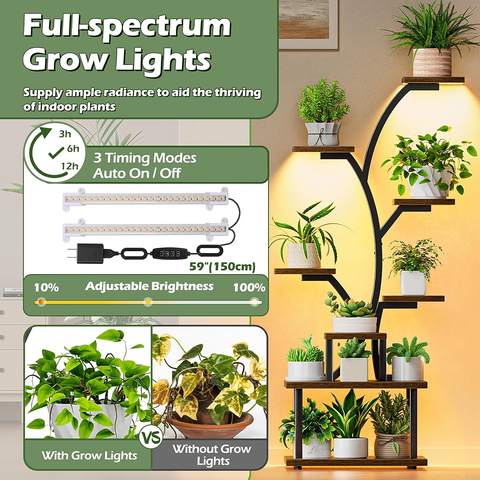 צמח ירח חצי מקורה מקורה עם פרח אור מתלה פרח לגדול אורות אהבה, 8 מתכת מרופפת-6 מדף מקורה